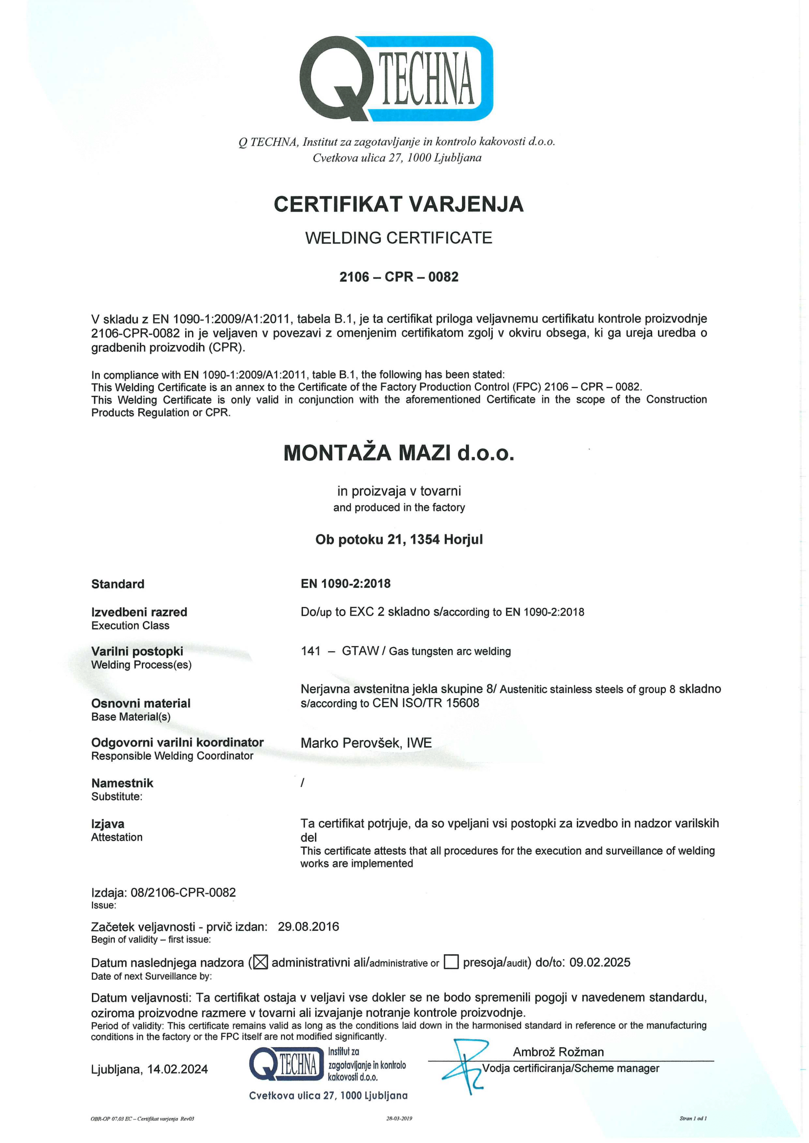 V našem podjetju ponujamo visoko kakovost v skladu z zahtevanimi prepisi ter sodobnimi varilnimi aparati proizvajalcev Fronius, Kemppi in Steel.