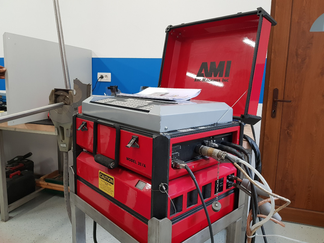 Proces opravljamo z varilnim aparatom ameriškega proizvajalca AMI ARC MACHINES INC., model 207 s 150-amperskim varilnim izvorom.